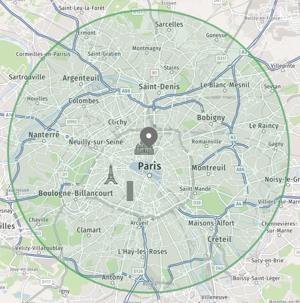 Zone sans frais de déplacement