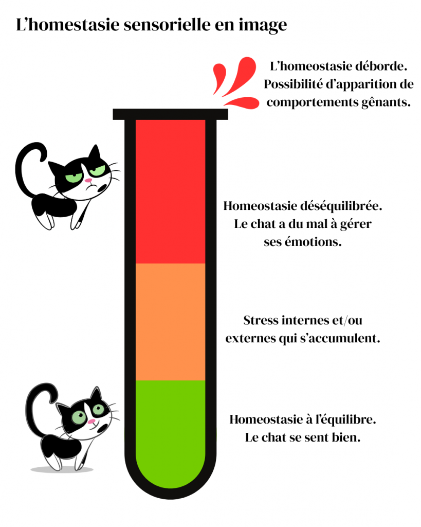 Le but est donc d’essayer de maintenir cette homéostasie sensorielle à un état d’équilibre en faisant attention aux besoins et aux émotions du chat.